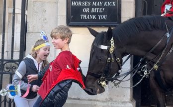 King’s Guard Horse Bites Boy’s Jacket 🐴😲 A mischievous King’s Guard horse snaps at a boy’s jacket, surprising everyone nearby and showing that even the most disciplined animals have a …