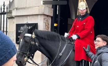 😱Tourist Ignores Guard’s Warning… Daughter Pulls Him Away Just in Time! A tourist blatantly ignores the Royal Guard’s warning, getting dangerously close to the horse. Just as things escalate, his …