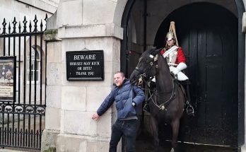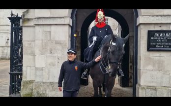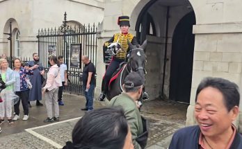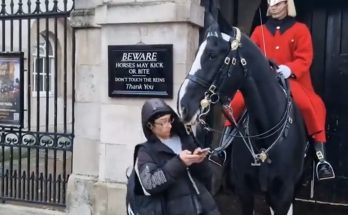 The King’s guard charges horse at tourist guard shouts (GET BACK) The King’s Guard suddenly urges his horse forward toward the tourist and shouts “GET BACK,” a powerful warning that …
