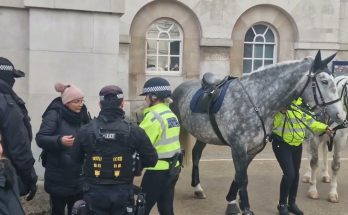 Police warn tourist not to touch the guard or the horse after guard shouts stand clear After the guard commands “Stand clear,” police immediately step in, firmly warning the tourist …