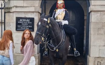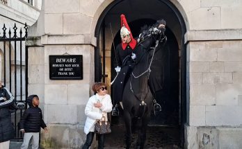 THE KINGS GUARD SHOUTS (GET OFF THE REINS) SECOND TOURIST HAS SECOND THOUGHTS The King’s Guard suddenly shouts, “GET OFF THE REINS!” and the second tourist instantly freezes, clearly rethinking …
