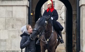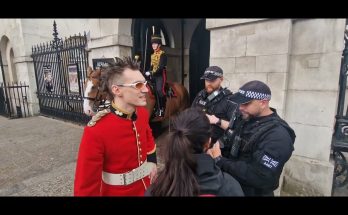 Women shouts at kings guard. How would you like to stand in your own sxxt armed police arrive Woman shouts at the King’s Guard and insults him, armed police quickly …