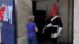 HE IS BACK AGAIN THIS TIME HE HAS A POSTCARD FOR HORSE GUARDS He returns again, this time smiling as he brings a postcard for the Horse Guards.