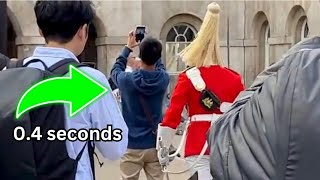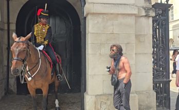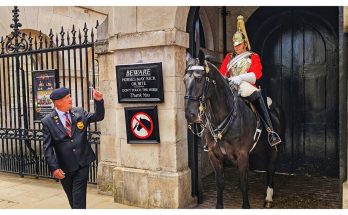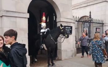 Father and son pose with the Horse. kings guard tells them to get off the Reins A calm moment turns firm as the King’s Guard tells the father and son …