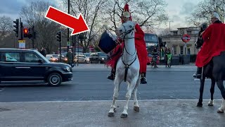 Car Makes King’s Guard Horse Spooked A passing car startled the King’s Guard horse, causing a tense moment as the royal guard quickly regained control.
