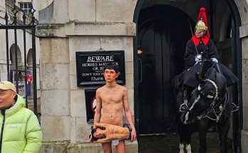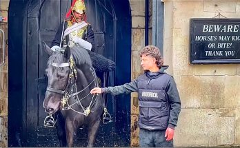 Royal Guard Stays Unshaken Amid Tourist Chaos Despite a crowd of noisy and restless tourists, the royal guard stands perfectly still, completely unshaken. The horse shifts slightly but remains calm, …