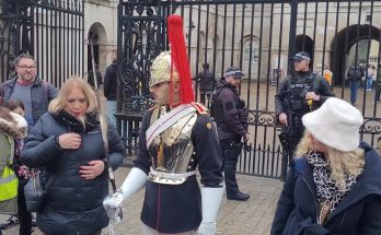 Little girl returns fallen spur to King’s Guard in the arches! A little girl spots a fallen spur glinting on the ground and gently picks it up. With a mix …