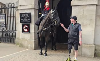 Man with a prosthetic leg, gets to stroke the horse! A touching moment unfolds at Horse Guards as a man with a prosthetic leg gently strokes the royal horse, his …
