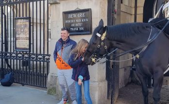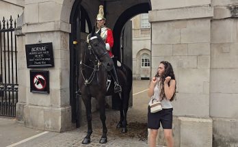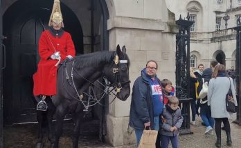 Royal guard horse tries to take her coat off! Read More