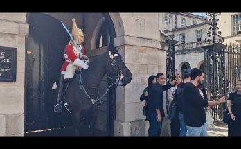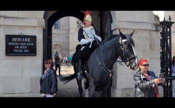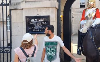 Tourist grabs the rein other tourist points out the sign horse chews on every one! A curious tourist grabs the horse’s rein despite the clear sign, only for another visitor …