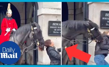 Royal Guard Holds His Ground Against Rude Tourists A Royal Guard stands unwavering as disrespectful tourists push boundaries, demonstrating calm authority and the disciplined presence that commands respect.